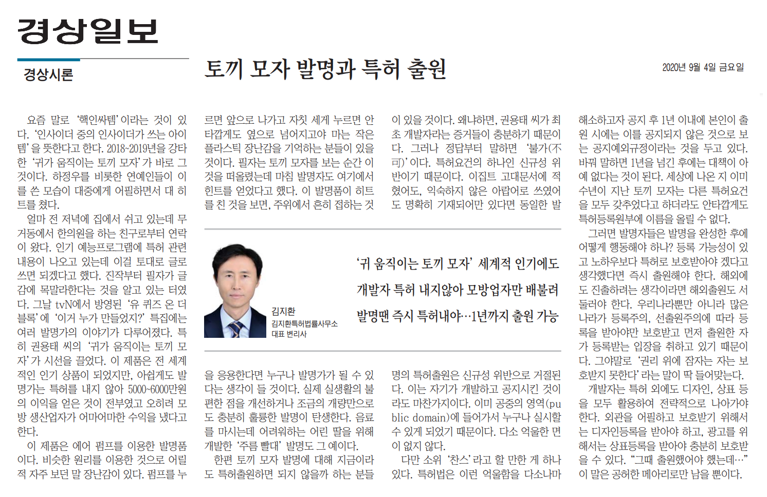 요즘 말로 '핵인싸템'이라는 것이 있다. '인사이더 중의 인사이더가 쓰는 아이템'을 뜻한다고 한다. 2018~2019년을 강타한 '귀가 움직이는 토끼 모자'가 바로 그것이다. 하정우를 비롯한 연예인들이 이를 쓴 모습이 대중에게 어필하면서 대 히트를 쳤다.