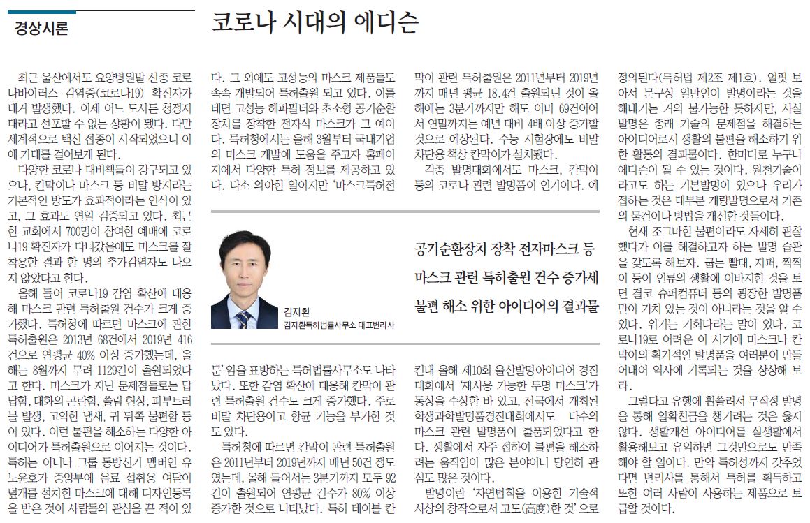 최근 울산에서도 요양병원발 신종 코로나바이러스 감염증(코로나 19) 확진자가 대거 발생했다. 이제 어느 도시든 청정지대라고 선포할 수 없는 상황이 됐다. 다만 세계적으로 백신 접종이 시작되었으니 이에 기대를 걸어보게 된다.